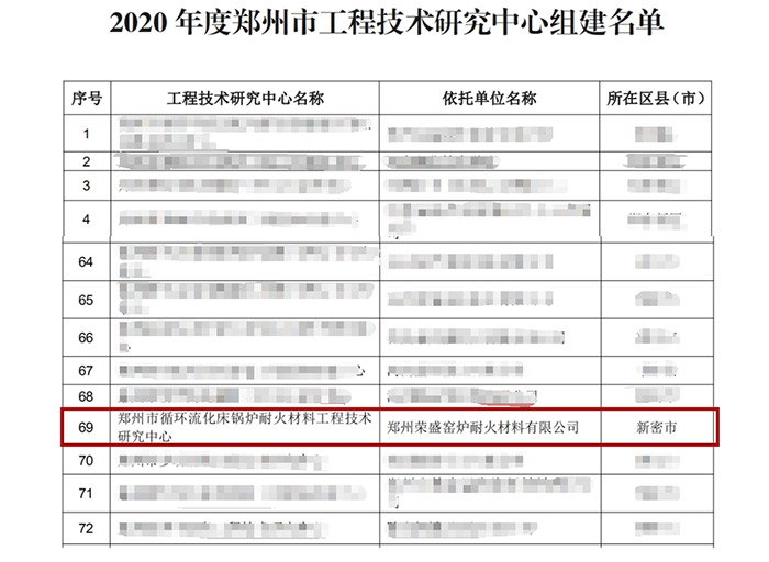 經(jīng)河南省鄭州市科學(xué)技術(shù)局批準(zhǔn),在鄭州榮盛窯爐耐火材料有限公司成立循環(huán)流化床鍋爐耐火材料工程技術(shù)研究中心,該中心是繼神華集團(tuán)和國(guó)神集團(tuán)之后成立的CFB技術(shù)研發(fā)和耐材應(yīng)用中心。